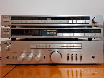 Stereo Vintage Sony produzione anni 80 composto da amplificatore TA-343 potenza 2 X 30 W RMS, sintonizzatore tuner ST-JX3L e sintonizzatore tuner ST-JX4L, revisionati e perfettamente funzionanti a 190 euro.