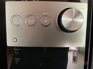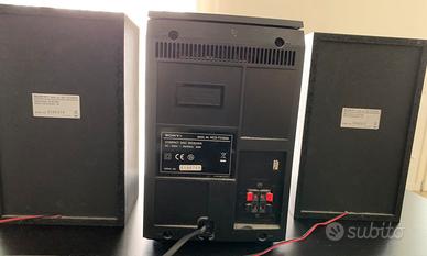 Stereo Sony con 2 casse, lettore cd, radio, e plug per iPod.