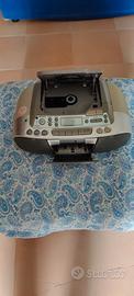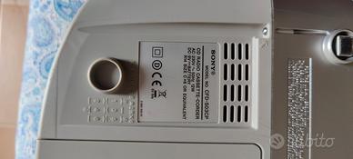 Sony CFD-S03CP Radio CD Cassette Player / Recorder Sony CFD-S05CP perfettamente funzionante. Puo' registrare direttamente su cassette sia da CD che dalla Radio FM/AM. La radio e' a sintonia digitale e ricerca automatica con possibilita' di memorizzare alcune stazioni preferite. Anche la regolazione del volume e' digitale con 2 tasti + e - . Una caratteristica peculiare del lettore CD e' che puo' riprodurre sia i normali CD Audio che anche i CD-R e CD-RW (riscrivibili), per cui si possono utilizzare anche i CD "fatti in casa" e masterizzati con i brani codificati in formato MP3. Puo' funzionare sia a batterie che a rete 220V. Completa di cavo di alimentazione.