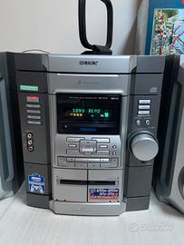Buone condizioni estetiche, perfettamente funzionante, Modello: HCD-RG22 Colore: Argento, Banda: AM, FM, Capacità caricatore CD: 3, Caratteristiche: Cambia CD, Hi-Fi, Jack per cuffie, Musicassetta, Uscite audio: Presa per cuffie