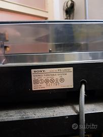 impianto completo di mobiletto, così composto: piatto sony mod. lx 231, amplificatore mod. ax 330, registratore cassette mod. w230, lettore cd mod. cdp 110, sintonizzatore mod. jx 230L e 2 casse da 80 W mod.Ss E400. L'impianto dismesso alcuni anni fa, era funzionante.