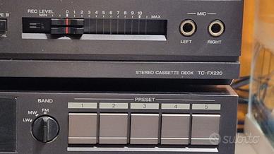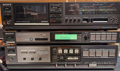 Vendo stereo Sony serie 220/320 anni 80, con Giradischi automatico con testina, Amplificatore, Sintonizzatore Am/Fm tutti funzionanti regalo Piastra a cassette non funzionante da revisionare. prezzo trattabile. solo consegna a mano.