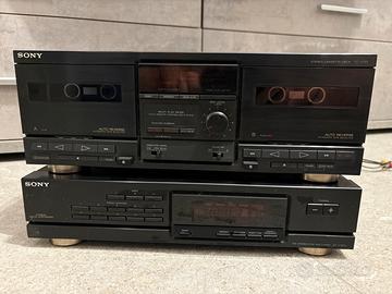 Vendo impianto stereo Sony vintage composto da: •Doppia piastra cassette Sony TC-V701 •Sintonizzatore radio Sony ST-V701L Sistema anni ‘90 di ottima qualità, ideale per appassionati di hi-fi vintage, collezionisti o per progetto di restauro. Caratteristiche: •Doppia cassetta con auto reverse •Funzione registrazione e copia cassette •Dolby NR •Sintonizzatore FM/AM con memorie Condizioni: •Esteticamente in buono stato •Non testato recentemente •Funzionante fino a circa 5–6 anni fa •Venduto visto e piaciuto Preferisco ritiro a mano su Torino