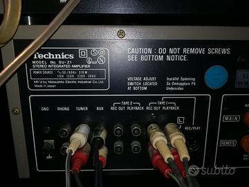 Vendo in blocco stereo TECHNICS euro 500,00 poco usato composto da PIATTO TECHNICS - Direct Drive Automatic – SL – D3 - AMPLIFICATORE TECHNICS - no.SU-Z1 – TUNER TECHNICS - radio ST–Z1- PIASTRA TECHNICS - M215 – CASSE TECHNICS - SB 3030 - 3 vie - misure 25lx24px48h - MOBILE TECHNICS - misure48lx38px88h senza ruote -