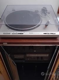 Impianto stereo completo e ben conservato, acquisito negli anni 80: Piatto Technics per dischi in vinile, lettore audiocassette e radio, , mobile portadischi, 2 casse