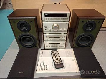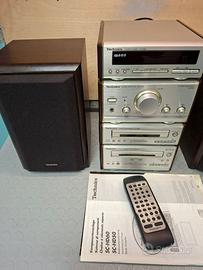 Vendo impianto stereo compatto Technics SC-HD50 a componenti separati di alta qualità, perfettamente funzionante e ben conservato. Il sistema è composto dai 4 moduli originali: • Amplificatore SE-HD50 • Sintonizzatore Radio ST-HD60 • Lettore CD SL-HD60 (Sistema MASH) • Piastra per Cassette RS-HD70 Sono incluse le casse originali Technics SB-HD50A, il Telecomando originale, i cavi di alimentazione, cavo di collegamento tra i moduli e antenna.