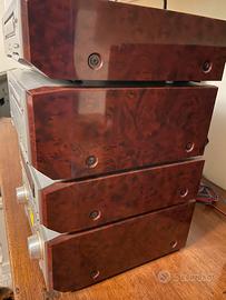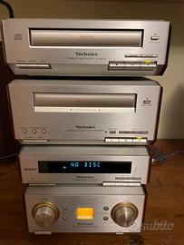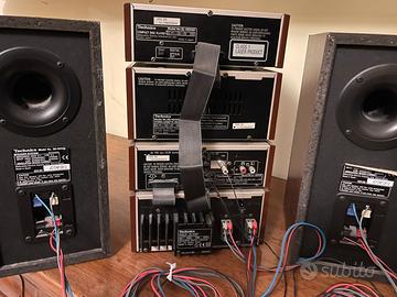 Impianto stereo compatto Technics SC-HD550 a componenti separati perfettamente funzionante e molto ben conservato ( con unico difetto estetico sul bordo di una cassa evidenziato in foto). Il sistema è composto dai 4 moduli originali: • Amplificatore SE-HD550 (Tecnologia VGCA per un audio cristallino) • Sintonizzatore Radio ST-HD550 • Lettore CD SL-HD550 (Sistema MASH) • Piastra per Cassette RS-HD550 Sono Inclusi: CASSE - Coppia di diffusori SB-HD550 con sistema Bi-Wiring, Telecomando originale, cavi di alimentazione, cavo di collegamento tra i moduli e antenna. Vendo solo con ritiro diretto ( zona Roma nord).
