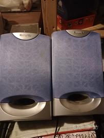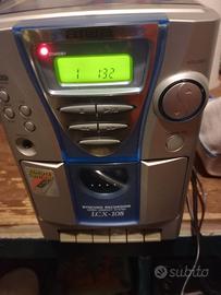 Stereo Aiwa con due casse Aiwa. Misure stereo: cm 20/20/15 . Misure casse : cm 20/18/13 . Usato ma ben tenuto. Funziona bene CD , radio, mentre con le cassette a volte non va l'audio.