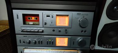 con amplificatore, giradischi, radio e cassette.