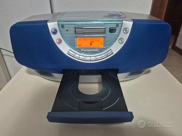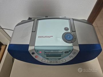 Stereo boombox vintagePanasonic RX-EX1dei primi anni '90. Include un lettore CD, un lettore di audiocassette, una radio AM/FM ed è dotato di tecnologia "Harmonic Enhancer Sound" per la qualità audio. Perfettamente funzionante ed esteticamente ottimo, con qualche leggero segno di usura sulla parte superiore. Cavo e telecomando originali.