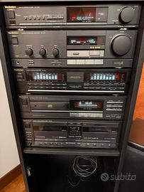 Vendo stereo technics vintage con telecomando funzionante, completo di lettore CD cassette ,radio amplificatore e equalizzatore .Compreso di mobile.