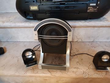Stero Panasonic Lettore DVD, Cassette, Radio, con altoparlanti aggiuntivi . Perfettamente funzionante. Fornito di telecomando. Riproduzione cassette. Dimensioni 60 x 20 x 20 cm