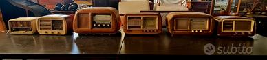 Stock radio da epoca - n.6 radio da collezione per appassionati di radio antiche. - Tutte le marche (da sinistra): Geloso, Minerva, Fantini, Irradio, Vega mod 632, Trans Continents - Buono stato di conservazione N.B. le radio non sono state testate. Vendo per urgenza di fare spazio. Consegna a prezzi modici.