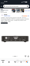 Vendo per inutilizzo streaming box Android TV 4K UHD-STR 423 cromecast integrato- DVB T2 e ricevitore via cavo, controllo vocale, dolby vision atmos, Google play, Netflix, prime video, Disney+, nero.
