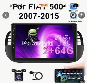 2G+64G per Android 13 Autoradio per FIAT 500 2007-2015 Radio 9 pollici IPS Touch Screen con Wireless Carplayer per Android Auto, GPS WiFi FM RDS SWC + Telecamera di retromarcia AHD