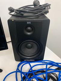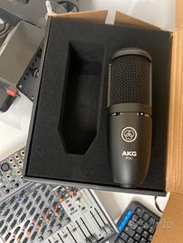 - Microfono AKG - Mixer BEHRINGER - Due casse M-AUDIO - Computer fisso+ mouse+ tastiera computer - Cavi vari - Sedia gamer - Asta microfono PROEL