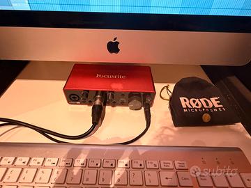 BUNDLE - FULL RECORDING STUDIO Microfono: Rode NT1-A (perfette condizioni) + Asta + Scudo fonoassorbente TONOR Casse: Rokit 7 krk (come nuove, ancora con pellicola sul display) Scheda Audio: Scarlett 2i2 focusrite ( ottime condizioni, 2 input) Tastiera: Yamaha psr-e453 (praticamente mai usata) + piedistallo + leggio iMac: 21.5 inch, late 2013, 1tb archiviazione (funziona bene per tutte le daw) Cuffie: Audio-Technica (cuffie nuove, chiuse) TUTTI I CAVI INCLUSI NEL BUNDLE
