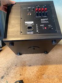 Sub marca Speakercraft, doppia cassa bassi avvolgenti e dimensioni ridotte, qualità e potenza, ottimo come complemento per un impianto home teatre o per dare bassi a unimpianto stereo, a mio avviso sempre essenziale.