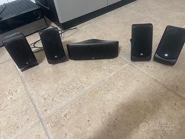 5 casse satelliti JBL SCS200: 2 frontali 2 posteriori 1 centrale, Sub attivo JBL 200/230, Sintoamplificatore Harman Kardon AVR-360 HDMI7 usato solo per 1 mese