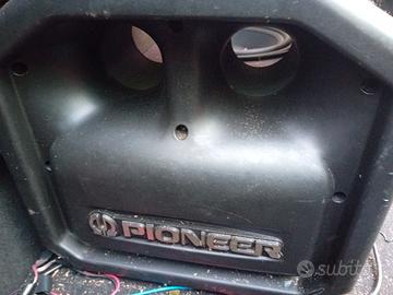 vendo sub woofer pioneer come si vede in foto è una cassa armonica rivestita in mochett nera e vetro di ispezione, più un amplificatore fenner 4 canali perfettamente funzionante