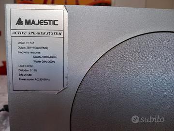 Vendo sub WUFER Majestic come nuovo,completo di cavi,disponibile a qualsiasi prova,si può collegare ad home TEATRE,amplificatore,sub amplificato con presa di corrente