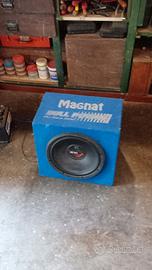 potenza: 300w rms ,max 600w impedenza 4ohm bobina raffreddata ad aria box basso reflex non faccio spedizioni , chi fosse interessato puoi venirlo a recuperare nel punto stabilito pagando in contanti , maggiori info in privato