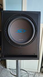 subwoofer Alpine da 25cm doppia bobina da 2ohm 900w max suona benissimo,cassone artigianale in MDF da 19mm con porta reflex accordata a 37hz,il volume interno è un paio di litri in più a quello dichiarato dalla casa giusto per dare un po' di profondità in più ai bassi senza esagerare.posso provarvelo senza problemi se siete interessati.per contatti scrivetemi su WhatsApp al numero 3490954569,o sulla mail.