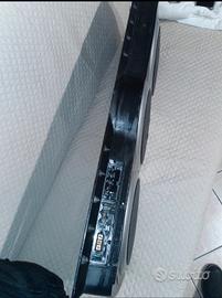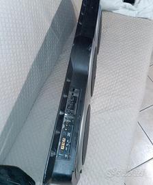 Subwoofer amplificato in cassa chiusa - Infinity BASSLINK T CASSA ATTIVA AMPLIFICATA INFINITY CON TRIPLO SUB DA 25 CM 3 x 10" CON AMPLIFICATORE INTEGRATO CASSA DA 102,6 CM DI LUNGHEZZA Ultra SLIM SOLO 16,4 CM DI Profondità' CARATTERISTICHE: Subwoofer attivo, in cassa chiusa (isobarica), con amplificatore integrato. Sistema con driver principale attivo (centrale) e doppi radiatori passivi (laterali). Questa configurazione è studiata per "massimizzare la resa", in relazione al piccolo spazio. Cassa di forma compatta, che permette installazioni in posizioni altrimenti inutilizzabili. I posizionamenti consigliati sono dietro gli schienali, a pannello o in orizzontale nel baule. Le griglie protettive dei woofer permettono di poterci appoggiare sopra gli oggetti insicurezza. Potenza RMS 250W X 3 Diametro dei subwoofer 10" (pollici) - 25 cm - 250 mm. Risposta in frequenza 20 Hz / 120 Hz. Ingressi per il collegamento audio stereo in formato RCA standard (2 connettori). Ingressi ad alto livello, per collegare il sub direttamente alle uscite di potenza dell'autoradio. Compatibile quindi con tutte le autoradio, anche quelle di serie, senza uscite pre-out rca. Funzione "auto turn-on" per accende il sistema in presenza di segnale musicale. Controllo regolabile del "guadagno" in ingresso. Controllo regolabile del "taglio crossover" da 50 Hz a 120 Hz (12 dB/ottava). Controllo regolabile "bass boost", per enfatizzare i bassi @ 40 Hz da -6 dB a +3 dB. Selettore per l'inversione di fase, selezionabile tra 0° e 180°. Connettori di alta qualità, placcati. Telecomando con cavo, per il controllo remoto del volume, posizionabile a piacere. Comprese "staffette" e accessori per il montaggio. Dimensioni indicative (LxAxP) 103x37x16 cm. Astenersi affaristi a vuoto e perditempo prima di contattarmi guardate le caratteristiche parlando con degli installatori di car audio seri, grazie