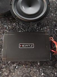 Subwoofer Audison 800 watt diametro 27 cm. più amplificatore Hertz 760 watt tutto funzionante e in ottimo stato. Possibilità di vendita separata.