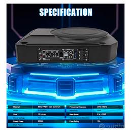 !!NUOVO MAI USATO!! Marchio: WODHMIEY Potenza massima in uscita dell'altoparlante: 800 Watt Risposta in frequenza: 20 Hz Tecnologia di connettività: AUX Modalità uscita audio: Stereo Tensione in entrata :12 Volt [Prestazioni affidabili] Con alimentazione elettrica, amplificatore integrato, ingressi di alto livello, sensibilità di ingresso regolabile e circuito di protezione sovraccarico, offre prestazioni affidabili per il audio della tua auto. [Eccellente dissipazione del calore] La costruzione garantisce un'eccellente dissipazione del calore e prestazioni stabili. La griglia in acciaio inossidabile laccato nero antiruggine è indeformabile e indeformabile. [Eccellente qualità del suono] Il subwoofer offre un'eccellente esperienza sonora a bassa frequenza per il tuo veicolo occupando poco spazio. [Controllo potente] Il subwoofer 10 pollici sotto il sedile dell'auto offre un potente controllo per regolare il suono a proprio piacimento per un'eccellente esperienza di ascolto. [Controllo completo del suono] Include un controllo del volume del subwoofer cablato per regolare il guadagno, l'amplificazione dei bassi e il controllo di transizione per un'esperienza a bassa frequenza incredibile.