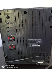 Non Spedisco Non Spedisco...Subwoofer attivo Aiwa ts-w45ez di alta qualità, 60watt rms su 8ohm, ottimo come aggiunta a sistemi hi-fi oppure a sistemi surround home teather. Molto versatile: è dotato di fuvnzione standby con attivazione automatica all'arrivo del segnale musicale oppure con accensione manuale. È dotato di ingresso di segnale rca (uscita da amplificatore o da lettore dvd blue ray) e anche di ingresso speaker dei cavi di potenza con relativa uscita per collegare i normali diffusori destro e sinistro. In questo modo è compatibile con tutti i sistemi hifi, anche con quelli non dotati di uscita sub, perchè basta collegarlo all'uscita normale dei diffusori con i comuni cavi di potenza. Una ulteriore nota versnatile di questo sub è che in ogni caso si può regolare autonomamente il volume del sub, anche nel caso del collegamento con cavi di potenza delle casse, poichè l'amplificazione attiva rimane anche in questo caso. Un subwoofer versatile e di qualità ottima adatto a tutti gli usi. L'unico dotato della tecnologia single vented bandpass system, che produce bassi più profondi e più potenti di prodotti similari.