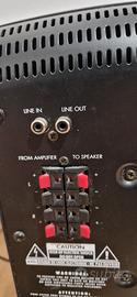 Vendo a 150€, subwoofer autoalimentato della Bowers & Wilkins, come da foto. Si trova in buone condizioni d'uso e perfettamente funzionante. Type Active, vented bass-reflex subwoofer Amplifier Power 85 W Driver 6.5" (165 mm) magnetically shielded long-throw cone Frequency Response 27 Hz – 100 Hz Sensitivity/Signal-to-Noise Ratio 94 dB Impedance 100 kΩ Connectivity Line-level (RCA) and speaker-level inputs/outputs Controls Music/movie mode switch and a top-mounted control panel Dimensions 378 x 250 x 385 mm Weight 11 kg Ritiro possibile solo di persona. Non spedisco in nessun caso.