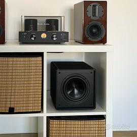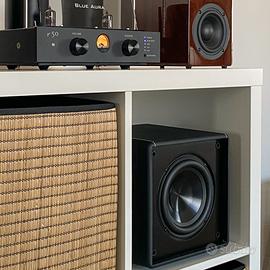 Rivenditore hi-fi esclusivamente online! Disponibili più unità in stock dei nuovi prodotti Blue Aura: • Amplificatore v50 • Giradischi PG2 • Diffusori AT700 • Subwoofer X-Sub Il Blue Aura X-Sub è un subwoofer attivo compatto progettato per estendere e valorizzare le basse frequenze del tuo impianto hi-fi o home audio. Con un driver da 6,5″ e un cabinet studiato per bass-reflex, X-Sub offre bassi profondi e coinvolgenti senza perdere controllo e definizione, perfetto per musica, home cinema o per completare diffusori full-range come gli AT700.  Il design elegante con rivestimento in finta pelle e cuciture si integra in qualsiasi ambiente domestico, mentre i comandi posteriori permettono di adattare volume, fase e frequenza di crossover in base alla posizione nella stanza e alle tue preferenze di ascolto.  ⸻ CARATTERISTICHE PRINCIPALI • Subwoofer attivo compatto da 45 W • Driver da 6,5″ con porta bass-reflex • Risposta in frequenza: 25 Hz – 200 Hz • Comandi: volume, fase, regolazione crossover • **Auto On / Standby a basso consumo • Ingresso: RCA Line In • Amplificatore classe D con DSP • Cabinet elegante con rivestimento simil-pelle • Dimensioni: 230×230×230 mm circa • Peso: circa 5 kg • Design discreto ed elegante • 2 anni di garanzia inclusa  ⸻ 📦 Disponibilità immediata Diverse unità nuove e sigillate disponibili in pronta consegna. 🛡 Garanzia totale In caso di difetto, sostituzione con un prodotto nuovo per tutta la durata della garanzia. 📦 Imballaggio originale con doppio cartone per massima protezione. 📩 Contattami per bundle personalizzati (es. v50 + AT700 + X-Sub).