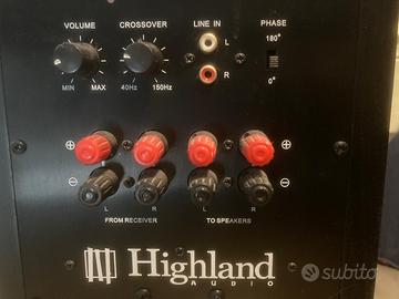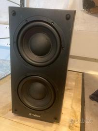 Vendo un subwoofer Highland Audio Dord265, di produzione francese (tra 2006 e 2009), in condizioni molto buone e perfettamente funzionante; utilizzato in coppia con due monitor PMC DB1i per diversi anni, li integrava in modo impeccabile, con una resa dei bassi precisa veloce e senza sbavature. 2 altoparlanti da 16,5 cm Bass-reflex sul fondo potenza 120W Filtro attivo regolabile da 38 a 150Hz Risposta in frequenza: 28 - 150Hz Entrate linea e diffusori Dimensioni : H420 x L225 x P553 mm Peso: 18 kg Dato il peso e l’ingombro non spedisco.