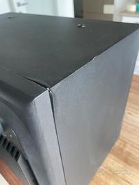 Vendo in perfetto stato di funzionamento subwoofer JBL Control SUB6. Questo subwoofer attivo in elegante nero si adatta perfettamente a qualsiasi ambiente della stanza e convince per la sua capacità di produrre bassi profondi che danno vita a film, musica e giochi. Godetevi un'esperienza di ascolto incomparabile, supportata dalla rinomata qualità del marchio JBL, che è sempre stato sinonimo di prestazioni audio eccezionali. Larghezza: ca. 43,3 cm Altezza: ca. 32,5 cm Profondità: ca. 28 cm Peso: 12 chilogrammi. Segni d'uso come si vedono nelle foto: unico difetto da segnalare sono i 2 angoli superiori dovr di é verificato un piccolo distacco della pellicola che riveste il cabinet. Il cabinet é, invece, integro. Vendita privata