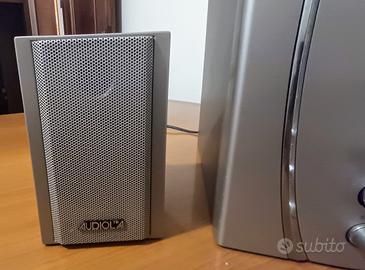 Subwoofer Audiola, completo di 2 casse e cavi, ottimo anche come casse per PC. Funzionante.