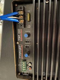 Sub di Target Audio attivo (amplificatore integrato e filtro) da 25cm in configurazione Bass Reflex. Modello TBA 260, con ingressi PRE e HILEVEL. Usato ma perfettamente mantenuto e funzionante. Ottima risposta dinamica, veloce.