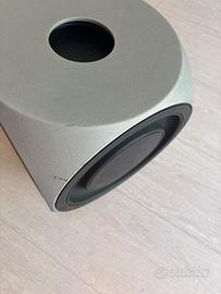 Vendo per passaggio a sistema superiore iconico subwoofer attivo Bang & Olufsen Beolab 2. Non ha bisogno di presentazioni: è il complemento ideale per trasformare una coppia di Beolab (6000, 8000, 4000 o Pentas) in un sistema full-range cinematografico. Grazie alla sua tecnologia a radiatori passivi, offre bassi profondi, veloci e mai invasivi, nonostante le dimensioni compatte. Caratteristiche Principali: • Potenza: 850 Watt (Amplificatore in Classe D ICEpower). • Driver: 1 woofer attivo da 250mm e 2 radiatori passivi laterali per eliminare le vibrazioni del mobile. • Tecnologia: ABL (Adaptive Bass Linearization) per proteggere i driver anche ad alto volume. • Regolazioni: Switch per calibrazione in base alla posizione (Angolo, Parete o Libera).