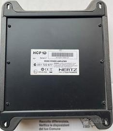 Vendo amplificatore Hertz HCP 1D, monoblocco in Classe D, potente e compatto, ideale per pilotare subwoofer con estrema precisione e potenza. Caratteristiche tecniche principali: monoblocco Classe D (per subwoofer)