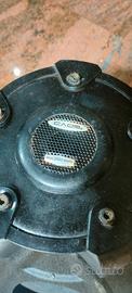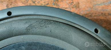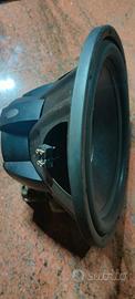 Subwoofer marca Caos di diametro 38cm, profondità 22cm, a doppia bobina, potenza massima 2000Watts 2/4 Ohm ( 2+2 ) Il sub e in buone condizioni e funziona, qualche segno di usura e una leggera abrasione sulla membrana come mostrato in foto, ma ciò non compromette il perfetto funzionamento. per info chiamatemi pure.