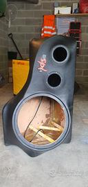 vendo per cessata passione subwoofer ciare 500 w rms monobobina, cassa con doppio reflex era dentro il baule di una golf 5 cassa fatta su misura con pelle vera e cuciture a mano, piastra con intagli antiurto inclusa nel prezzo