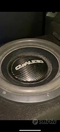 Subwoofer CL-AUDIO crx doppia bobbina 4000w rms 10000w di picco. Usato sempre con. amplificatore molto piccolo per mancanza di soldi, ha sempre suonato alla metà delle sue possibilità quindi come fosse nuovo, parapolvere in carbonio. Specifiche tecniche in ultime foto.
