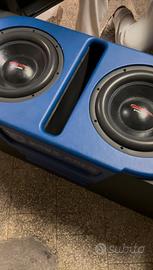 vendo coppia di subwoofer della st audio da 3000watt l’uno. cassone della bass face con led integrato, amplificatore della ipnosis per alimentare il tutto CAVETTERIA COMPRESA (cavi di rame puro per tutti i sub che già sono collegati tra di loro) 1m di cavo da 35mm per collegarlo direttamente alla batteria (anche questo di rame puro) COMPRESO DI MONTAGGIO (dipende dal mezzo) prezzo leggermente trattabile (tutti i materiali sono pari al nuovo)