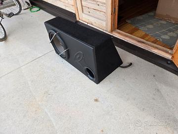 in ottimo stato e perfettamente funzionante: 30 cm doppia bobina 2 ohm 600 W box costruito secondo specifiche eton dimensioni box lunghezza : 70 cm altezza : 37 cm profondità 1 : 17 cm profondità 2 : 35 cm