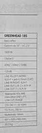 Subwoofer Greehead 18S 1600 watt usato una sola volta nuovissimo si vende per inutilizzo completo di imballo originale il prezzo di spedizione è orientativo, il prezzo esatto sarà confermato dopo indirizzo di spedizione. per info Giuseppe Pinco cell: 3390054841