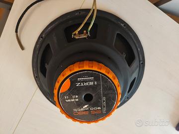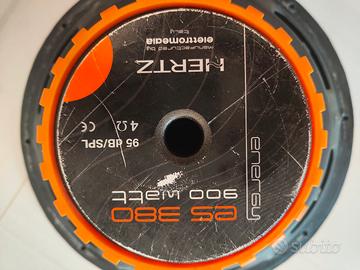 Vendo bellissimo sub della Hertz da 38 cm da 900 watt. Farò suonare con la massima cura, con amplificatore a 4ohm da 500 watt! Mai fatto gare, mai stressato, usato per ascolto in auto. Sono disponibile a qualsiasi prova! Spedisco a carico vostro