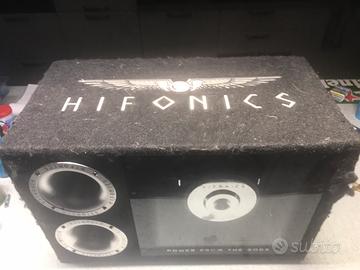 Subwoofer hifonics usato ma in buone condizioni perfettamente funzionante installato fin ad oggi 24/1/26 su un’automobile prezzo richiesto trattabile in base a spedizione o ritiro di persona presenta segni d’usura solo il rivestimento come da immagini allegate