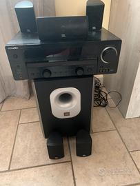 Subwoofer JBL con 4 casse da parete + una cassa da appoggio. Amplificatore Kenwood KRF - V5300D con trlecomando. Se volete posso anche venderli separati.