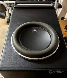 Subwoofer 3ohm da 25cm e 500w RMS con scatola versione AIRPORT da progetto di fabbrica realizzata in compensato marino e rivestita in pelle. Prestazioni e qualità inarrivabili per nessun competitor di queste misure, tenuta in watt estrema e risposta in frequenza ai vertici della categoria. Sempre pilotato con Phienix Gold MS2125 in mono. Disponibile per prova presso il mio domicilio. Il prezzo é poco trattabile in quanto è già stracciato e solamente perché la scatola ha qualche segno e taglio sulla pelle.