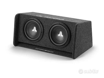 Sistema subwoofer chiuso con due subwoofer 10W0v3-4, moquette grigio scuro (600 W, 2 Ω) - Cassa con condotto